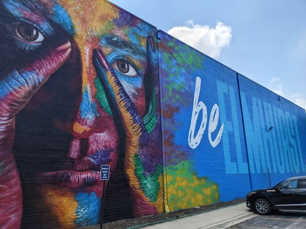 “Be Bold. Be Elmhurst” reads the large-scale mural in Elmhurst by Rafael Blanco, originally from Spain, and current Assistant Professor at Elmhurst University. Learn more about his public artworks, including the mural in Elmhurst, by Blanco who focuses his work on identity, human expression, and diversity & inclusion. Blanco began his career as a classically trained studio painter, but has focused on public art since 2014, especially large-scale murals. Be sure to see the new University-sponsored mural before attending.